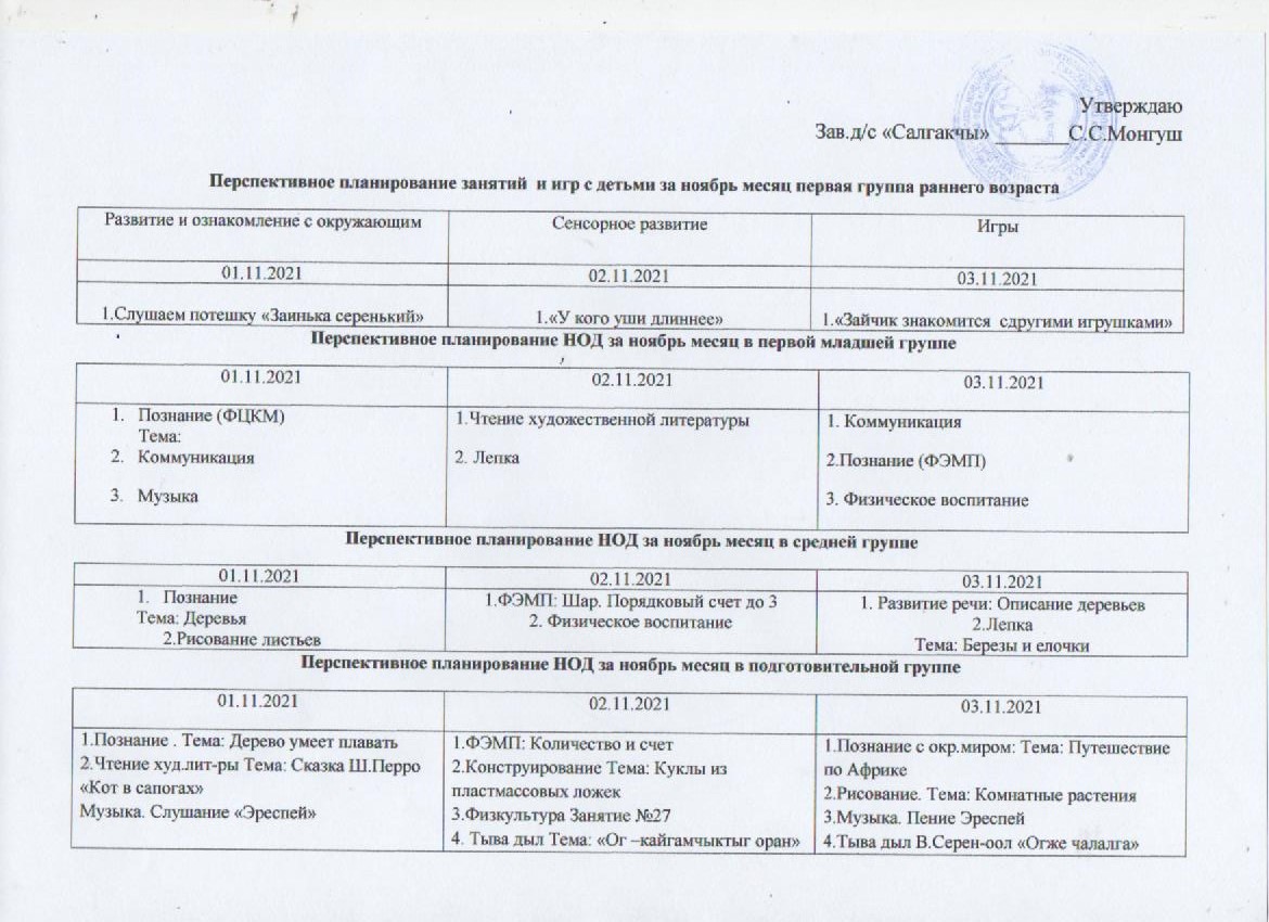 Перспективное планирование 01 ноября — 03 ноября 2021 года