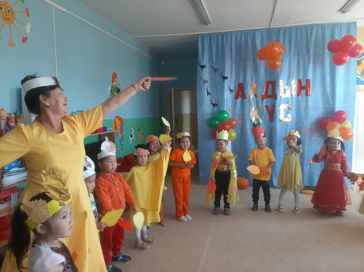 На празднике присутствовали 16 детей. Костюмы и атрибуты были подобраны заранее. Ведущий обращает внимание детей на красиво украшенный зал. Дети танцевали «Танец» с осенними листочками, спели песни. Принимали активное участие в празднике. В целом, осенний праздник прошел хорошо. Воспитанники получили удовольствие от участия в праздниках, эмоциональный и праздничный настрой. Воспитатели группы: Тюлюш Саяна Эрес-ооловна, воспитатель первой квалификационной категории, Хомушку Менги Шактар-ооловна,воспитатель.